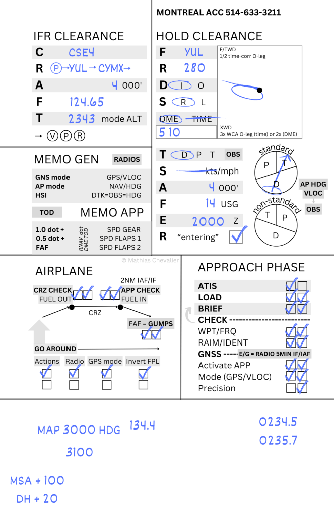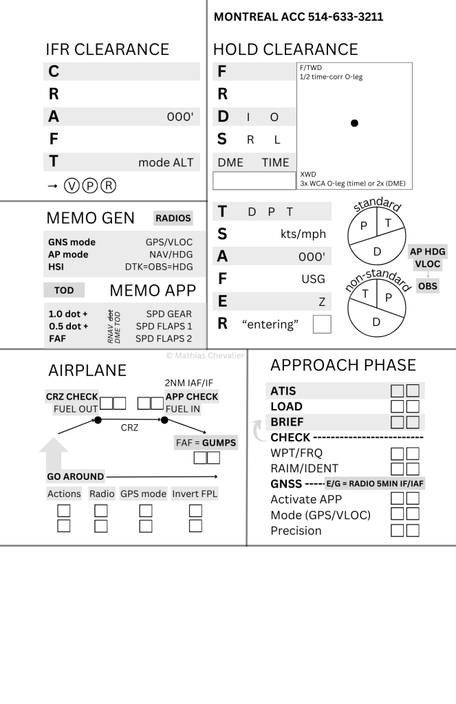Modèle pour la prise de notes en IFR (multi-engine piston, train rétractable)